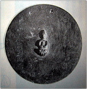 懸仏 青銅で直径10.1cm、厚さ2mm、重量一五〇g、の円盤状のもので。表面中央部に観世音坐像を浮彫りに鋳出してあり、上部に二つの小穴があり、像の右側に「白羽大明神御正躰」の字が見え。左下に「大二七□□」、像の下に「家次敬白」とあり、像の左に「応永一八年十二月吉日」の年記がある。